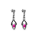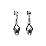 EARRING FOR WOMEN: It is handmade in Spain by Ciclón. ellipse silver bead pendant dangling earrings with push back closure