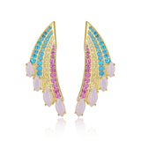 Style: Colorful zirconia arrange in the surface which like a rainbow. Colorful and fun.When the light flahes at the earring, the sparkling cubics will make you dignify.